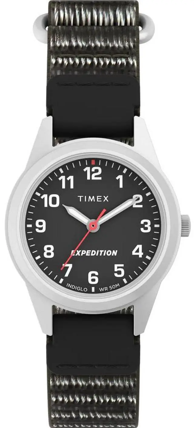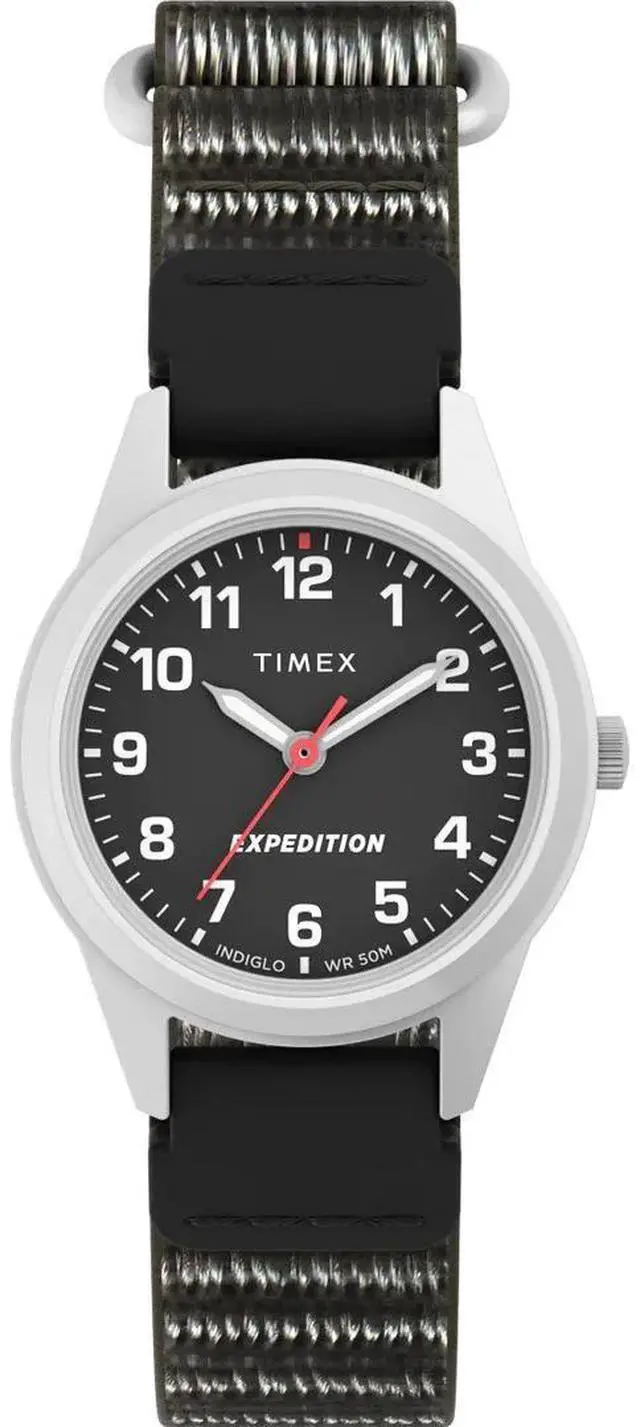 Watch Movement- Quartz Analog. Water Resistance- 50 meters. Crystal / Lens- Mineral Glass. Case Diameter- 26 mm. Case Height- 8 mm. Case Material- BRASS and LLB. Case Color- IP Steel. Case Finish- Brushed. Dial Color- Black. Dial Markings- Arabic (Full). Strap / Lug Width- 12 mm. Strap Material- Fabric. Strap Color- Black. Strap Buckle- Hook and Loop.