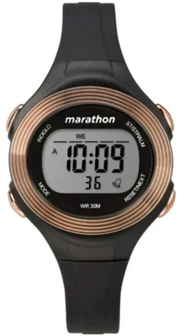 Black Sports Stopwatch. Customizable Alarm. Water resistant to 30 meters. INDIGLO Backlight.
