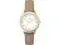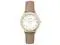 it features a gold-tone case and a clean white dial secured by a beige sustainable strap