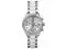 Case- Silver-tone alloy steel. Fixed silver-tone bezel with crystal set. Solid case back. Band- Two-tone (silver-tone and white) alloy steel bracelet. Closure- Deployment with push button release clasp. Dial- Silver-tone Analog type. Hands- Silver-tone luminescent (glow in the dark). Markers- Index and Roman numeral hour markers plus minute markers on the outer rim. Scratch resistant mineral crystal. Movement- Quartz. Chronograph. Date display at the 4 o clock position. Water Resistance- 30 meters. Case 38 mm.