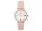 It features a delicate 32mm case in a soft rose gold-tone highlighted by a stunning rainbow crystal bezel and a clean white dial on a pink strap