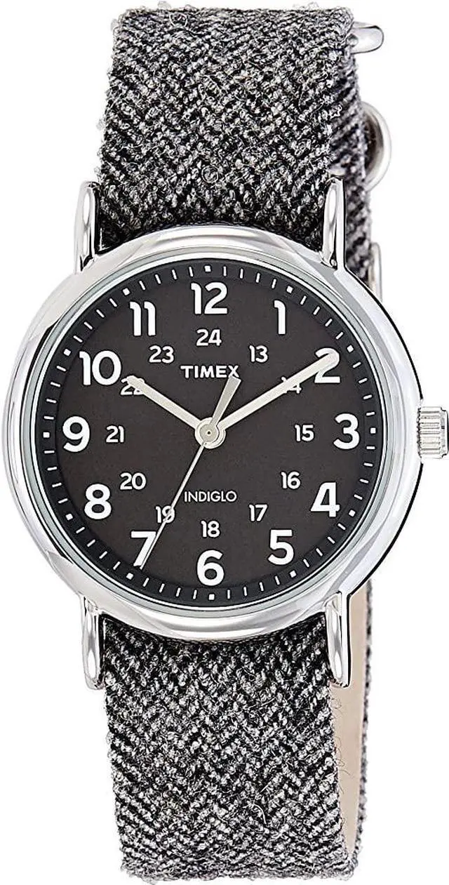 Silver tone brass case. Gray Canvas band. Black dial. INDIGLO. Case size- 38mm. Scratch resistant mineral crystal. Water resistant- 30 meters. Movement- Quartz.