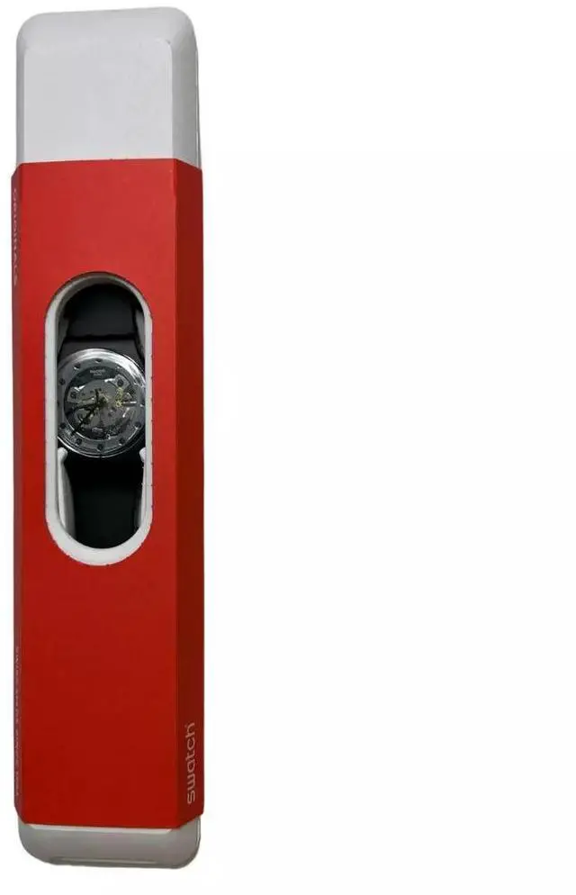 SILVER GLAM IN BIOSOURCED offers a fascinating view of its movement through a cut-away window at the center of the biosourced glass dial. A solid matte black biosourced material case sits on the matte black and red silicone strap of this watch with elegant silver-colored parts and clear crystals.