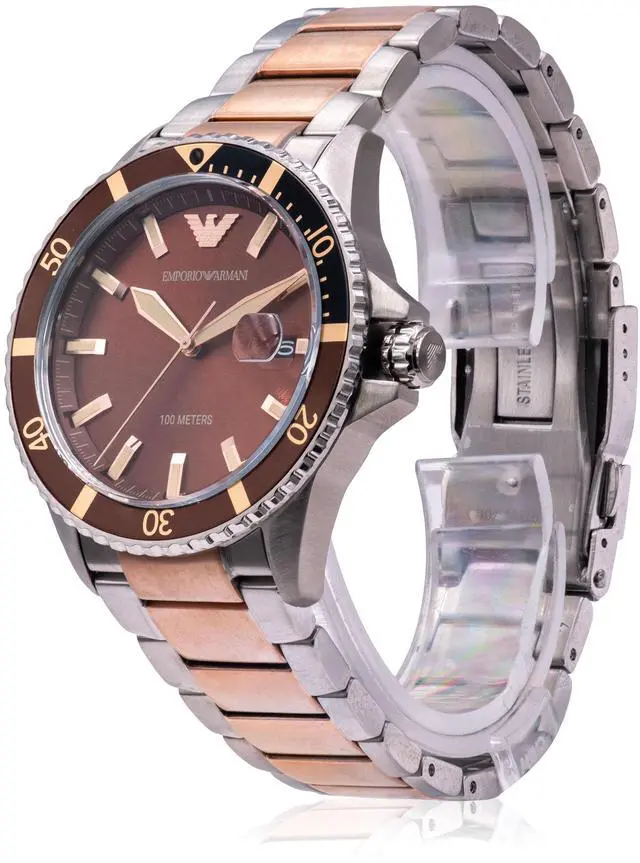 Stainless steel case. Two-tone stainless steel bracelet. Brown dial. Quartz movement. Date. Water resistant 100 meters. Case 42 mm.