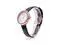Rose gold-tone stainless steel case. Leather strap. White mother of pearl dial. Quartz movement. Water resistant 30 meters. Case 30 mm.
