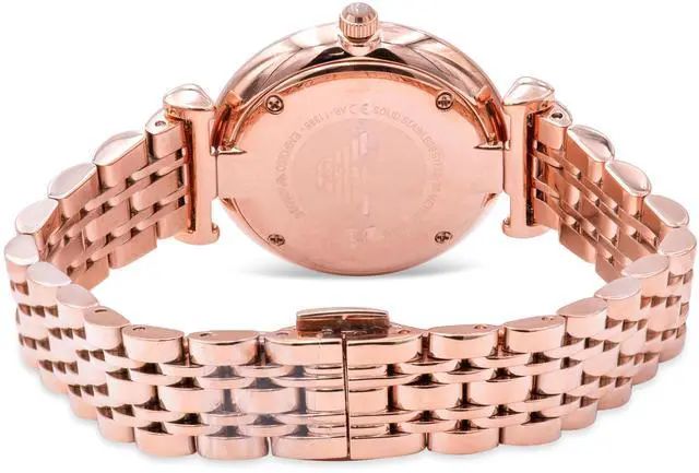 Rose gold-tone stainless steel case. Rose gold-tone stainless steel bracelet. Grey mother of pearl dial. Quartz movement. Water resistant 30 meters. Case 32 mm.