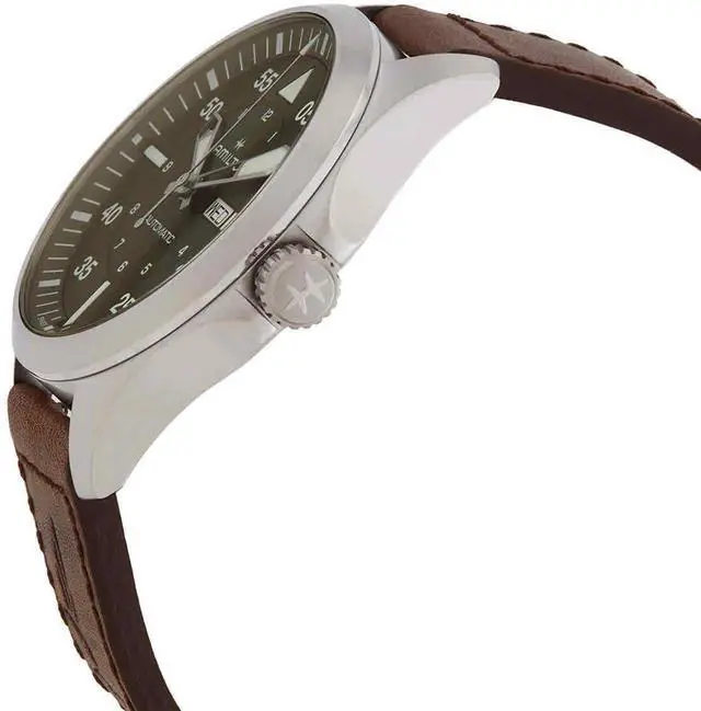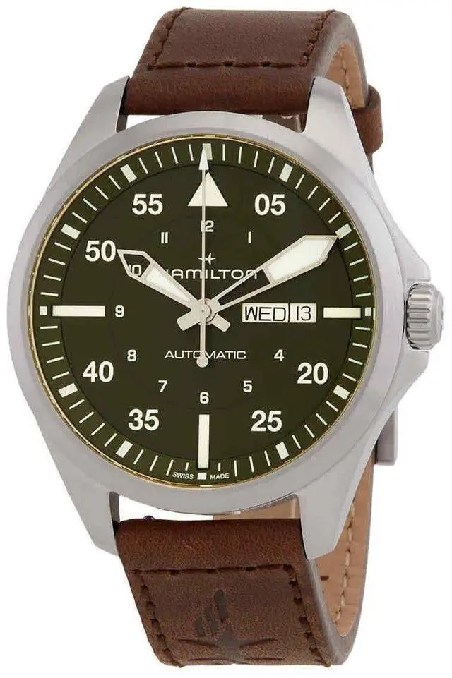 Hamilton Khaki Aviation Pilot Leather Strap Green Dial Automatic H64635560 100M Men's Watch