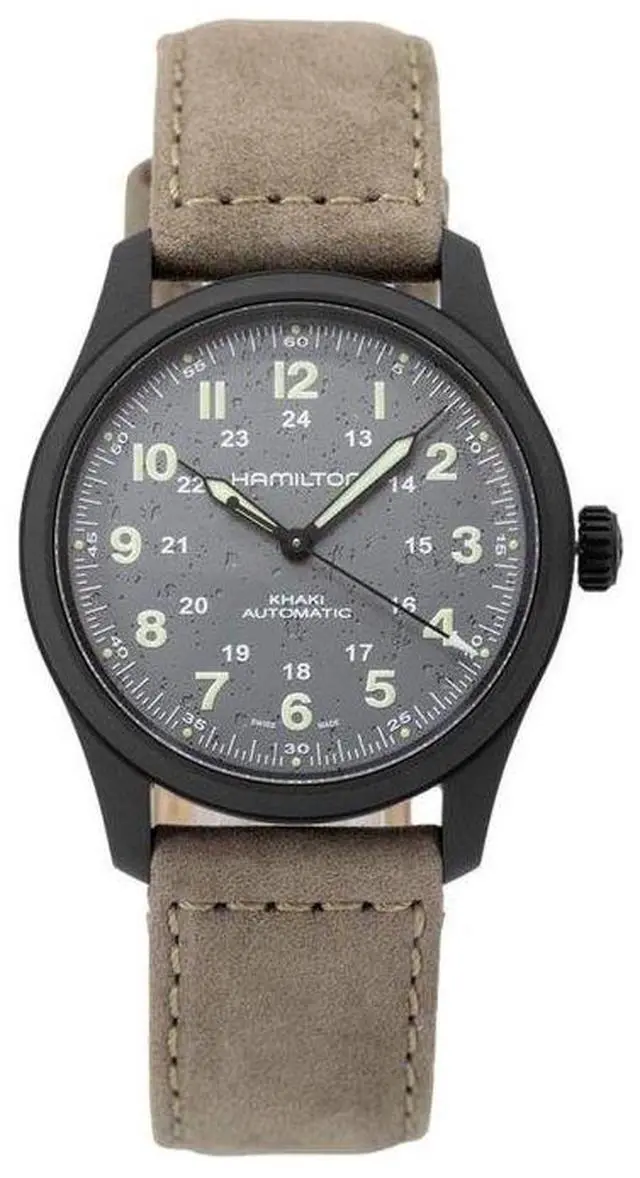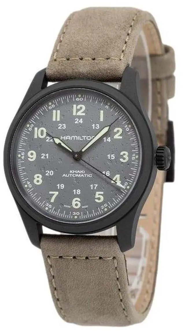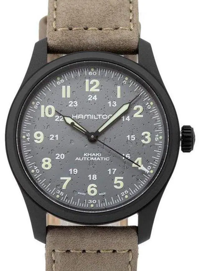 Hamilton Khaki Field Titanium Leather Strap Grey Dial Automatic H70215880 100M Men's Watch