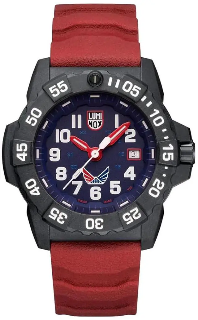Polycarbonate case, Rubber strap, Blue dial, Quartz movement, Scratch resistant sapphire, Water resistant up to 20 ATM - 200 meters - 660 feet