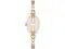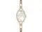 Case Material- Metal (Oval). Case Diameter- 19.5 mm. Case Thickness- 7 mm. Band Material- Metal (Adjustable Link Bracelet with crystal accents). Band Color- Rose Gold-tone. Band Width- 5.5 mm. Dial- White mother-of-pearl (Off-White) with rose gold-tone hands and genuine crystal markers. Crystal- Mineral Glass. Bezel- Metal set with 64 clear genuine crystals (Stationary). Movement- Japanese Quartz. Clasp- Jewelry Clasp and Extender. Water Resistance- Not water resistant.
