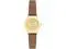 Case Material- Metal (Round). Case Diameter- 24 mm. Case Thickness- 8 mm. Band Material- Leather (Honey brown). Band Color- Brown. Band Width- 10 mm. Dial- Light champagne sunray with genuine diamond at 12 and gold-tone hands and markers. Crystal- Mineral Glass (Curved wall-to-wall). Movement- Japanese Quartz. Clasp- Buckle. Water Resistance- Not water resistant.