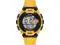 Case Material- Resin (Yellow Round). Case Diameter- 49 mm. Case Thickness- 14.5 mm. Band Material- Resin. Band Color- Yellow. Band Width- 20 mm. Dial- LCD (Gray display). Crystal- Acrylic. Bezel- Resin (Stationary). Movement- Quartz. Clasp- Buckle. Water Resistance- 30 meters. Functions- Time Seconds Day-Date-Month Chronograph Lap Time Alarm Dual Time Military Time and Backlight.