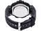 Case Material- Resin (Black metallic) with Chrome Top Ring (Round). Case Diameter- 44 mm. Case Thickness- 16 mm. Band Material- Resin. Band Color- Black and Blue. Band Width- 26 mm. Dial- LCD (Gray display). Crystal- Acrylic. Bezel- Resin (Stationary). Movement- Quartz. Clasp- Buckle. Water Resistance- 100 meters. Functions- Time Seconds Day-Date-Month Chronograph Lap Time Alarm Countdown Timer Dual Time Military Time Hourly Chime and Backlight.