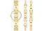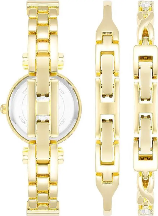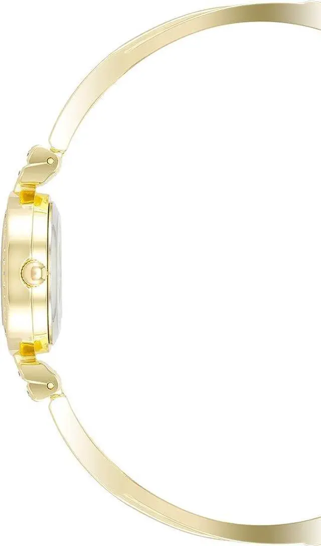 Gold-tone "X" shaped bangle accented with 22 clear premium crystals; adjustable end links; jewelry clasp and extender
