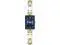 Case Material- Metal (Rectangular). Case Diameter- 28 mm. Case Thickness- 7.5 mm. Band Material- Metal. Band Color- Two-tone (Silver and Gold). Band Width- 8.5 mm. Dial- Navy blue sunray with gold-tone hands and markers. Crystal- Mineral Glass (Wall to wall facetted). Movement- Japanese Quartz. Clasp- Jewelry Clasp with Two Extenders. Water Resistance- Not water resistant.