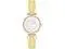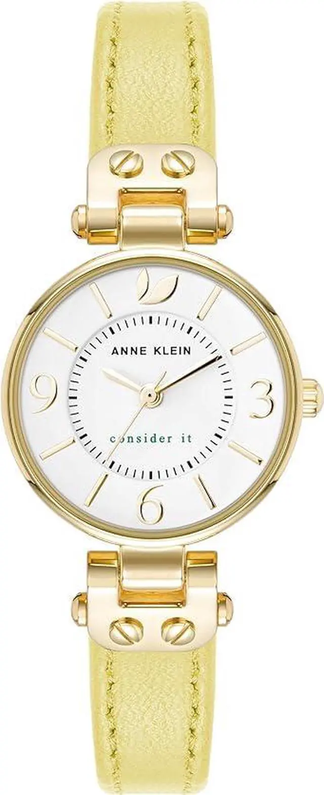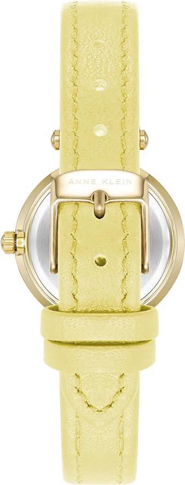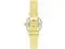Case Material- Metal (Round). Case Diameter- 26 mm. Case Thickness- 8.5 mm. Band Material- Sustainable Leather (Yellow). Band Color- Yellow. Band Width- 10 mm. Dial- White glossy with gold-tone hands yellow markers and black minute track. Crystal- Mineral Glass (Slightly domed). Movement- Japanese Quartz. Clasp- Buckle. Water Resistance- 30 meters.
