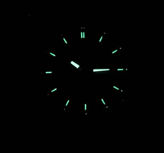 Luminous hands and hour markers.
