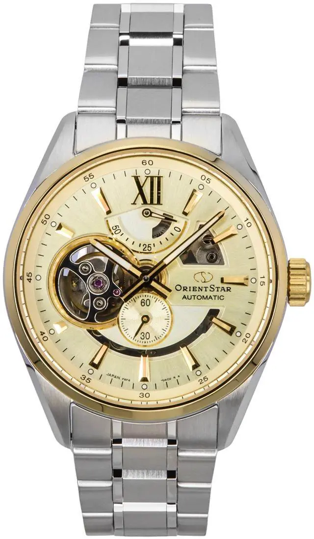 Orient Star Contemporary Stainless Steel Skeleton Champagne Dial Automatic RE-AV0124G 100M Men's Watch