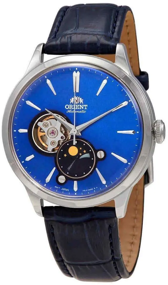 Orient Sun & Moon Phase Open Heart Dial Automatic RA-AS0103A10B RA-AS0103A30B Men's Watch Think of it as the Bambino with some added flair. The Sun & Moon delivers some of the absolute best value when it comes to affordable automatic watches. It has a movement built in-house and the whole unit comes with a solid backing of real history and heritage. The watch indicates the onsets of dawns and the dusks and shows the mechanism beating underneath.