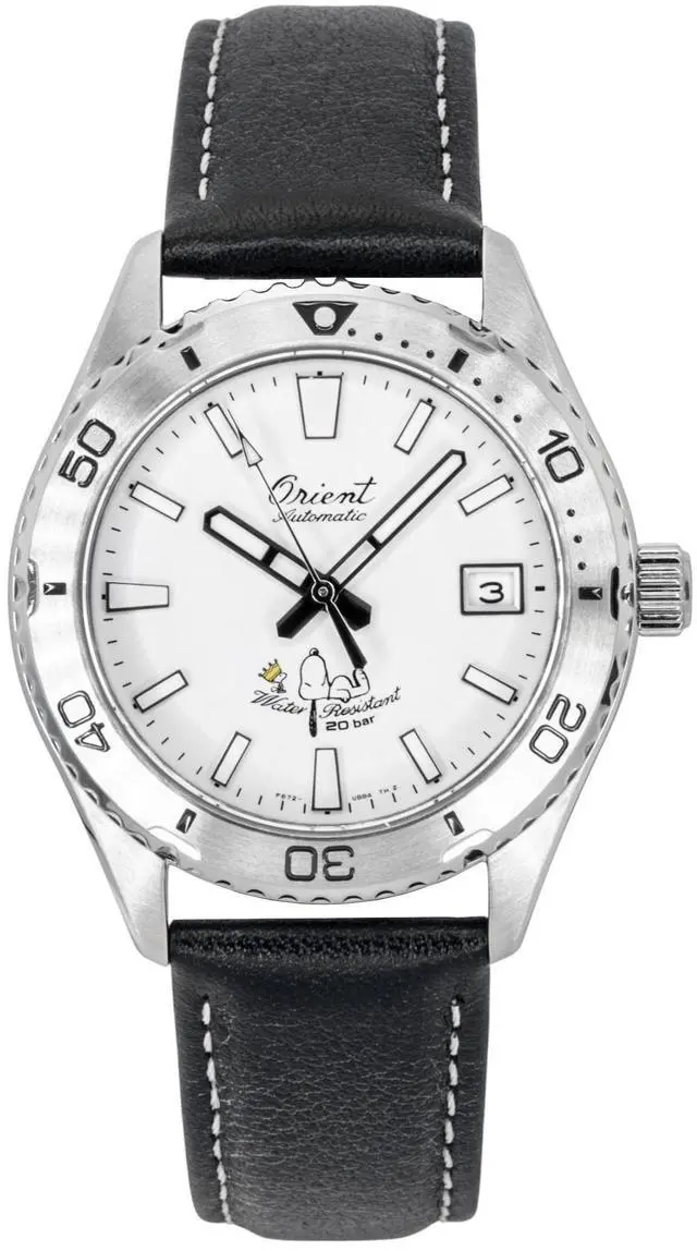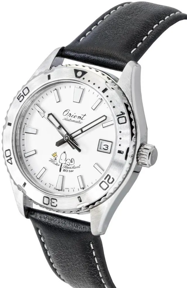 Orient Mako 40 Peanuts Limited Edition Leather Strap White Dial Automatic Diver's RA-AC0Q08S 200M Men's Watch