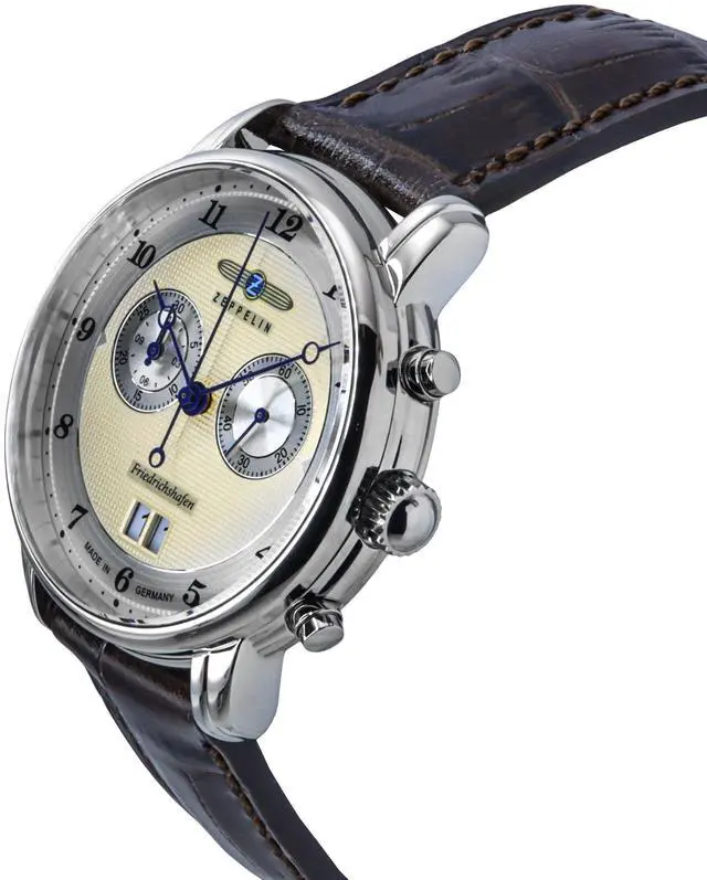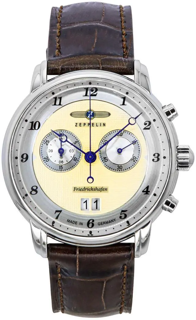 Zeppelin Friedrichshafen Chronograph Leather Strap Gold Dial Quartz 85845 Men's Watch