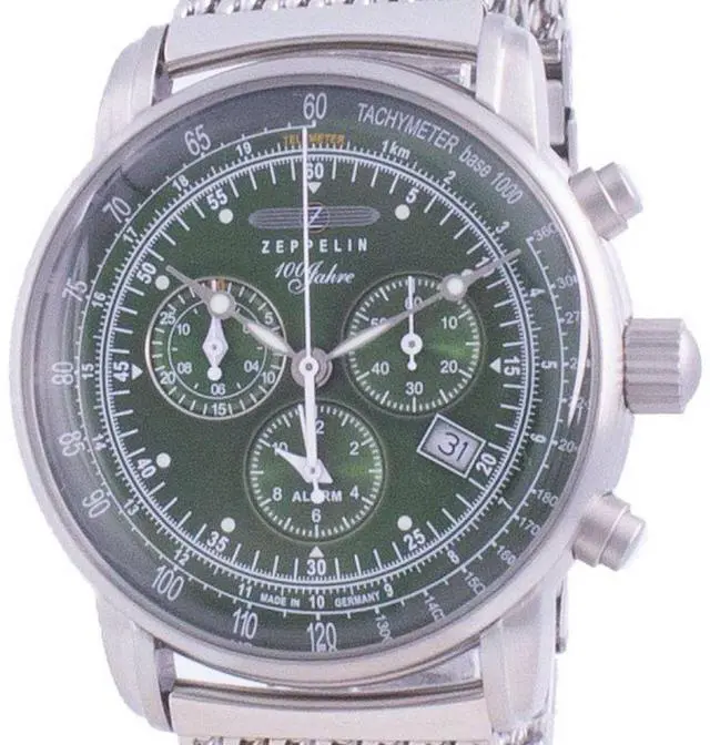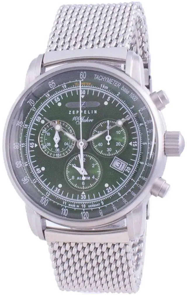 Zeppelin Jahre 100 Years Edition Chronograph Quartz 8680M-4 8680M4 Men's Watch The Zeppelin Jahre 100 Years Edition Chronograph is a special edition watch that captures classic elements and combines them within an elegant design, expressed through the combination of domed dials, domed crystals and modern dial accents. The complex case design features the typical Zeppelin shape on its edge and an alarm function ensures that you never miss the beat even under commute.