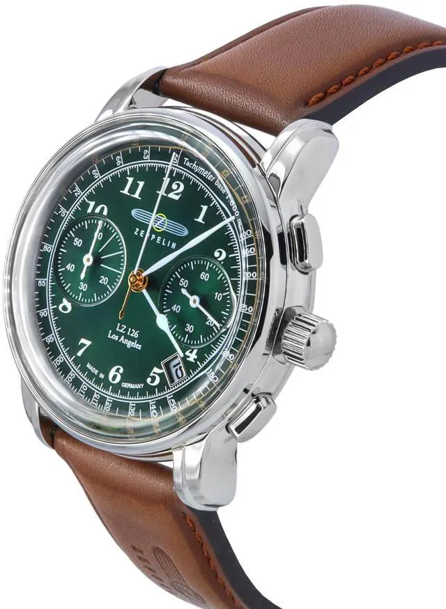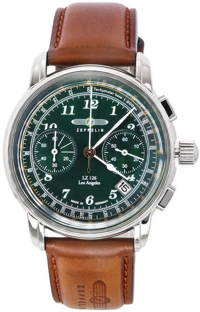 Zeppelin LZ126 Los Angeles Chronograph Leather Strap Green Dial Quartz 76144 Men's Watch