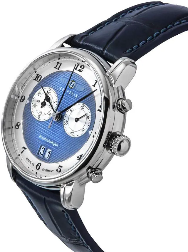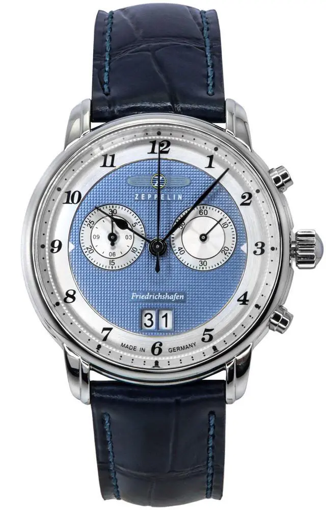 Zeppelin Friedrichshafen Chronograph Leather Strap Blue Dial Quartz 85843 Men's Watch