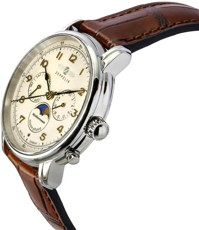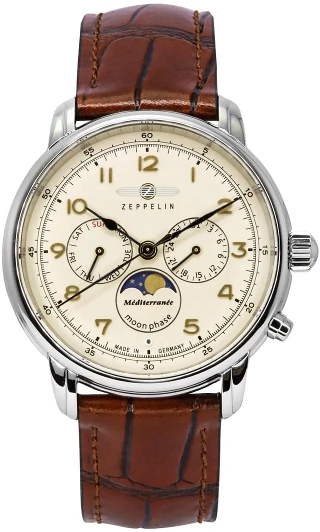 Zeppelin Mediterranean Moon Phase Leather Strap Beige Dial Quartz 96365 Men's Watch