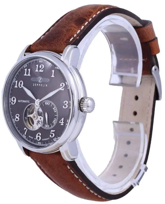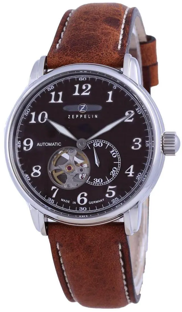 Zeppelin LZ127 Graf Open Heart Leather Automatic 7666-4 76664 Men's Watch An elegant watch, the open-heart lets you see the Miyota automatic movement whirring away every time you look at your watch. The backside reveals more of the movement along with the winding rotor and all those visuals bring the watch its industrial feel. The face is clear and stark, offering maximum visibility; making