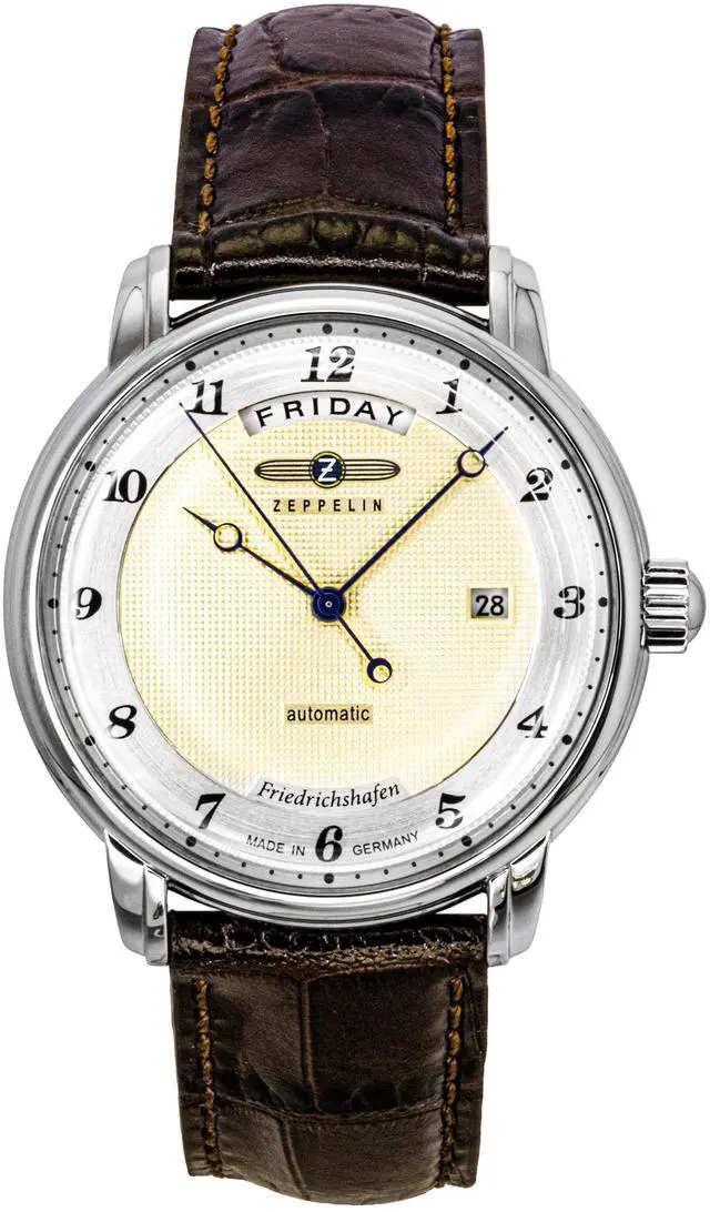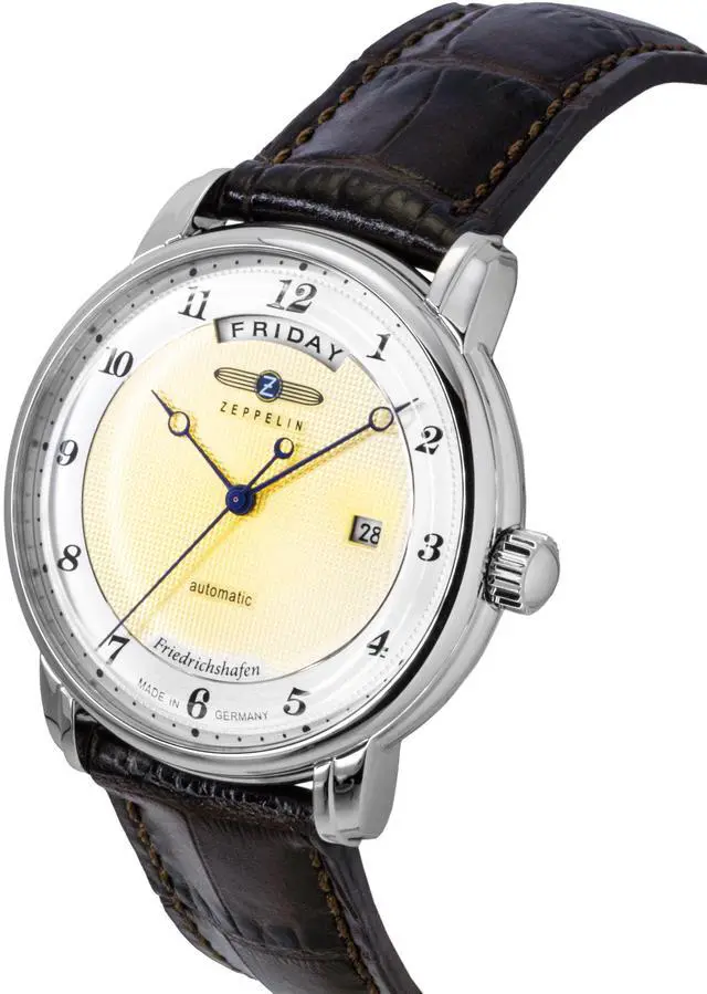 Experience the timeless elegance of the Zeppelin Friedrichshafen Z85625 Men's Watch. This automatic watch with its striking gold dial is designed to offer both style and precision. The open-heart feature on the dial not only highlights the intricate mechanics but also adds a touch of sophistication to your wrist. Its brown leather strap ensures comfort, making it an ideal daily wear. As an automatic watch, it requires no battery, using the natural motion of your wrist to power the movement, making it a reliable and eco-friendly option for watch enthusiasts. Perfect for those who appreciate both classic design and cutting-edge technology.