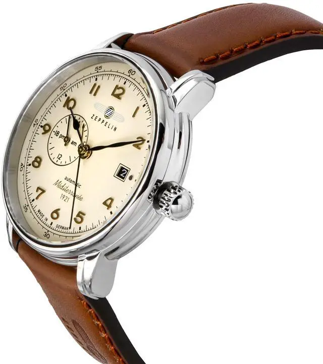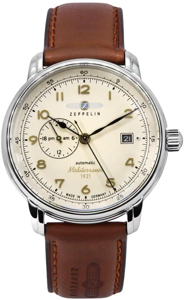 The Zeppelin Z96685 captivates with its warm beige dial, offering a refined aesthetic complemented by a traditional leather strap. Powered by automatic movement, this Mediterranean model combines timeless style with self-winding precision. Ideal for those who appreciate the craftsmanship of a mechanical watch, it's a perfect balance of elegance and function, making it a sophisticated choice for any occasion.