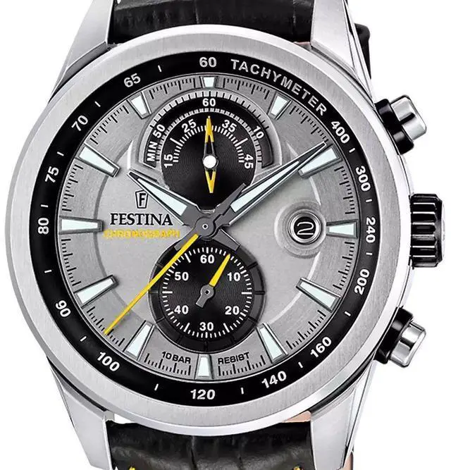 Festina Timeless Chronograph Leather Strap Grey Dial Quartz F20695-4 100M Men's Watch