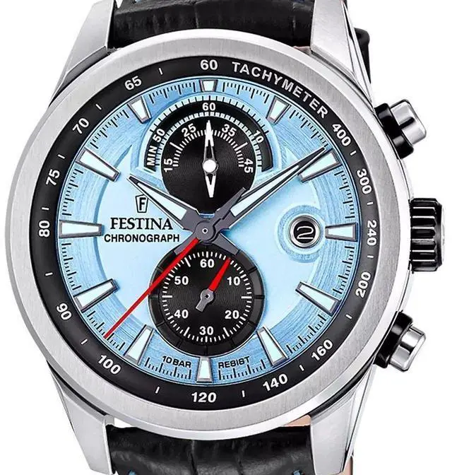 Festina Timeless Chronograph Leather Strap Blue Dial Quartz F20695-2 100M Men's Watch