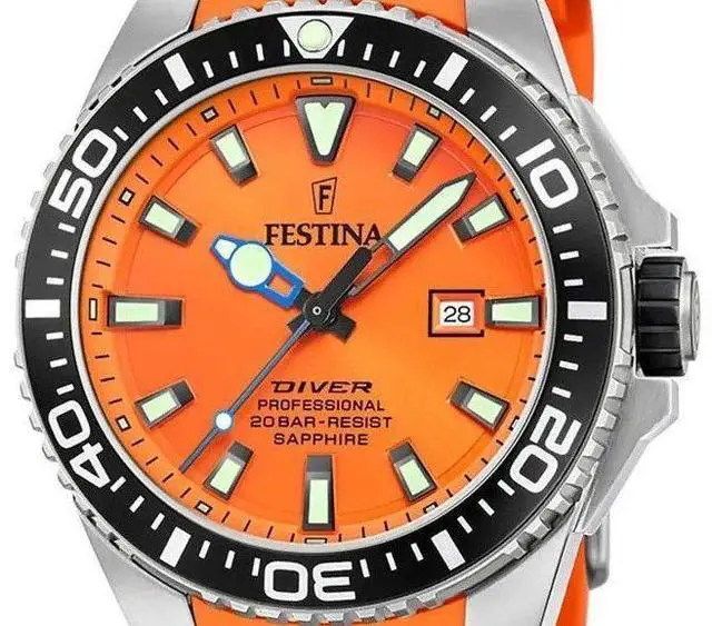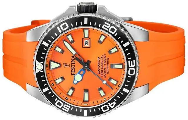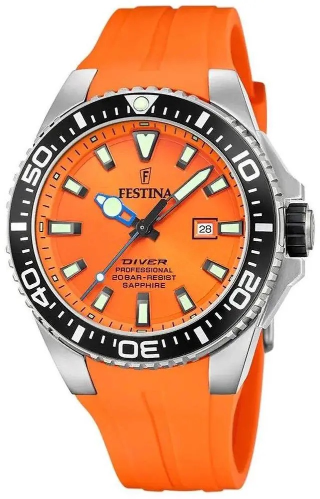 Festina Diver Rubber Strap Orange Dial Quartz F20664-4 F206644 200M Men's Watch