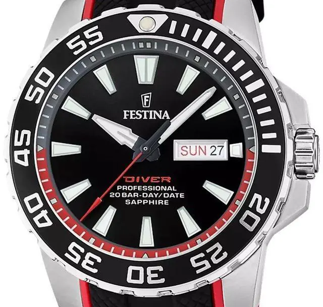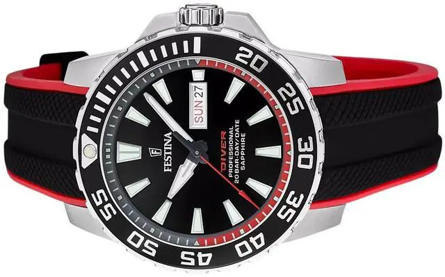 Festina The Originals Rubber Strap Black Dial Quartz Diver's F20662-3 200M Men's Watch