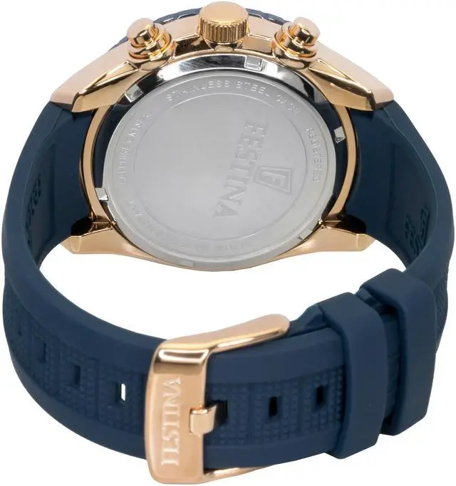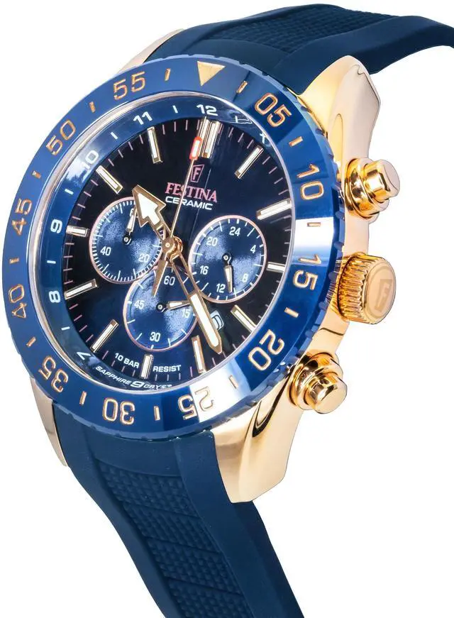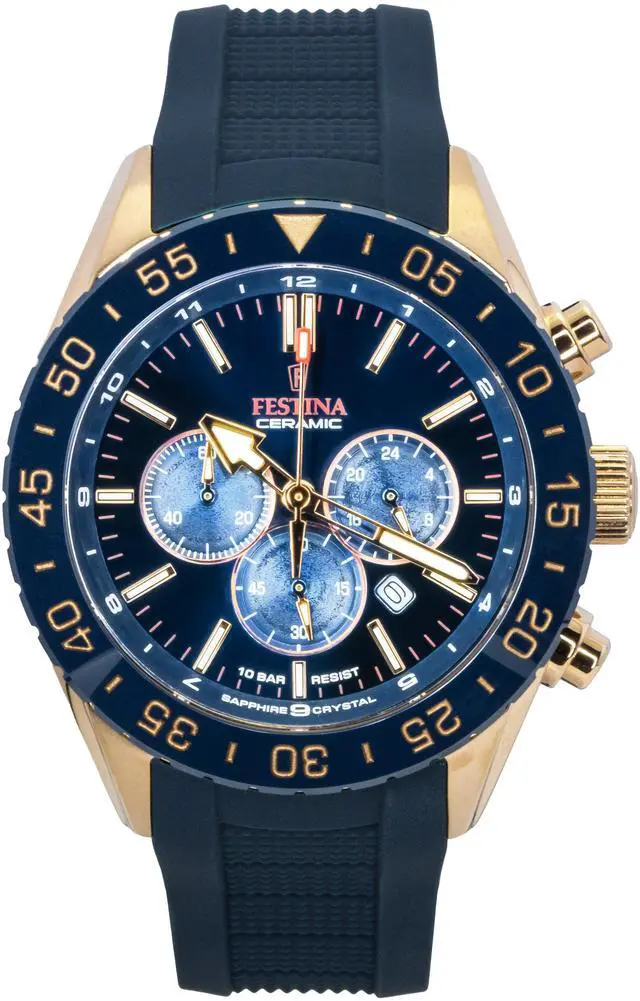 Festina Ceramic Chronograph Rubber Strap Blue Dial Quartz F20516-1 100M Men's Watch