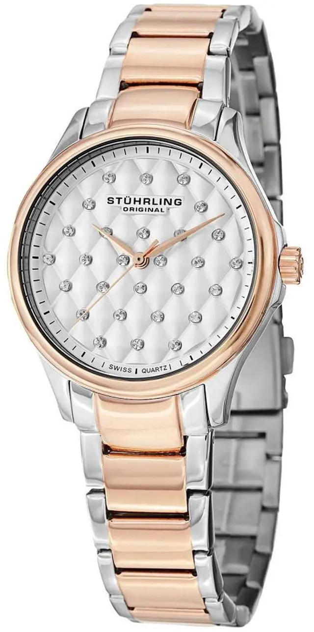 Stuhrling Original Womens 567.03 Vogue Swiss Quartz Crystal Dial Two Tone Rose Watch