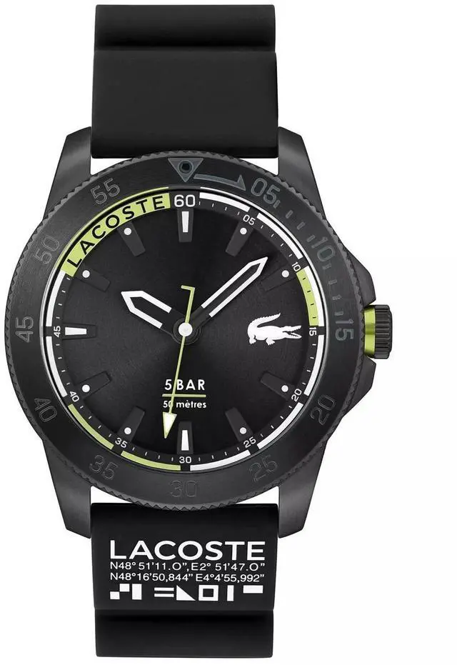 Effortlessly refined, the new Lacoste Boston is a timeless chronograph that exudes sporty sophistication. Three subeyes with a circular grooved finish complement the circular-brushed dial, while a flat bezel in colored aluminum, complete with a tachymeter, adds a stylish touch of modernity to the design.