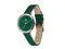 A modern family of timeless Geneva ladies features a stylish T-shaped accessory in a 1260mm case with an iconic Lacoste green double-layer sunburst dial with crop index.