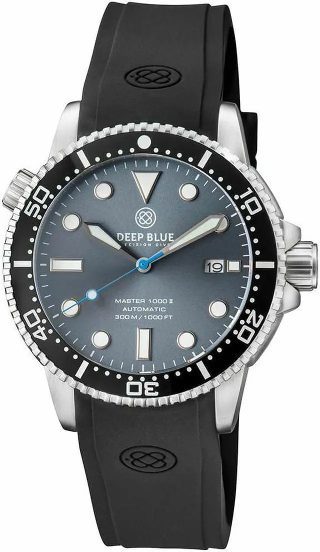 Deep Blue Master 1000 II 44mm Automatic Diver Watch Black Bezel/Slate Grey Blue Sunray Dial/Black Silicon Band