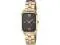 Mineral crystal lens Glossy black dial with gold-tone hands and markers Gold-tone adjustable link bracelet; jewelry clasp and extender Water resistant to 100 feet (30M)