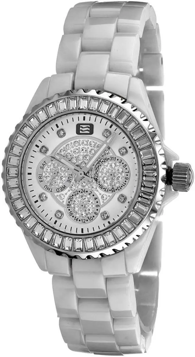 Ceramic case, Ceramic Bracelet, White dial, Quartz movement, Scratch resistant mineral, Water resistant up to 3 ATM - 30 meters - 100 feet