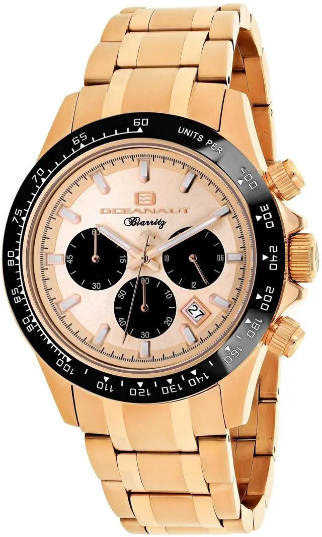 Stainless steel case, Stainless steel bracelet, Rose Gold dial, Chronograph Quartz movement, Scratch resistant mineral, Water resistant up to 10 ATM - 100 meters - 330 feet
