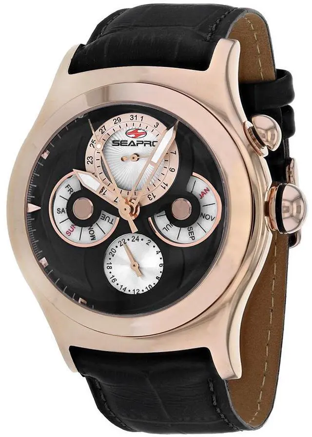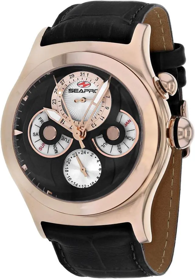Stainless steel case, Leather strap, Black dial, Quartz Movement, Scratch resistant mineral, Water resistant up to 5 ATM - 50 meters - 165 feet