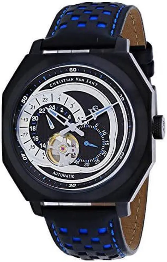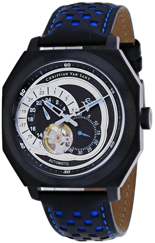 Christian Van Sant Mens Machina Stainless Steel Automatic Leather Strap, Blue, 22 Casual Watch (Model: CV0564)