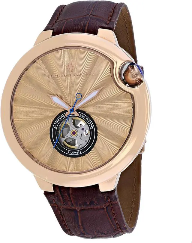 Christian Van Sant Mens Cyclone Automatic Stainless Steel Leather Strap, Brown, 20 Casual Watch (Model: CV0148)