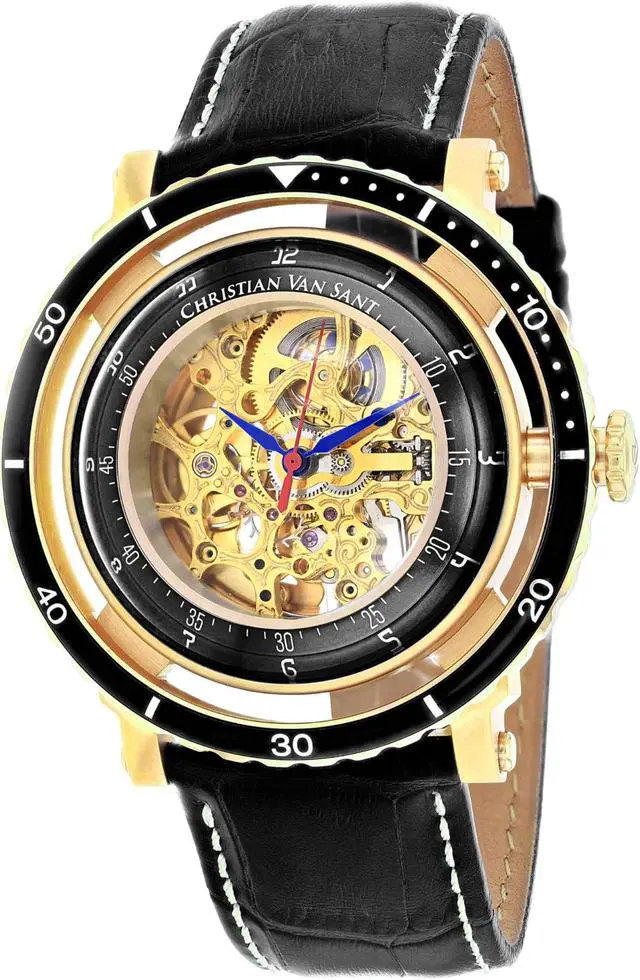 • Christian Van Sant Mens Dome Stainless Steel Automatic Watch with Leather Strap, Black, 21 (Model: CV0750)