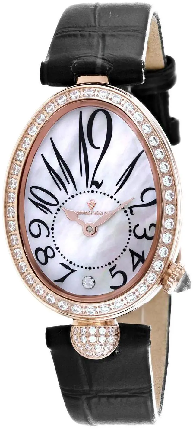 Stainless steel case, Leather strap, Mother of Pearl dial, Quartz movement, Scratch resistant mineral, Water resistant up to 3 ATM - 30 meters - 100 feet