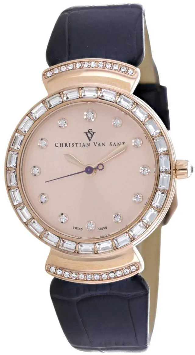 Stainless steel case, Leather strap, Rose Gold dial, Quartz movement, Scratch resistant mineral, Water resistant up to 3 ATM - 30 meters - 100 feet